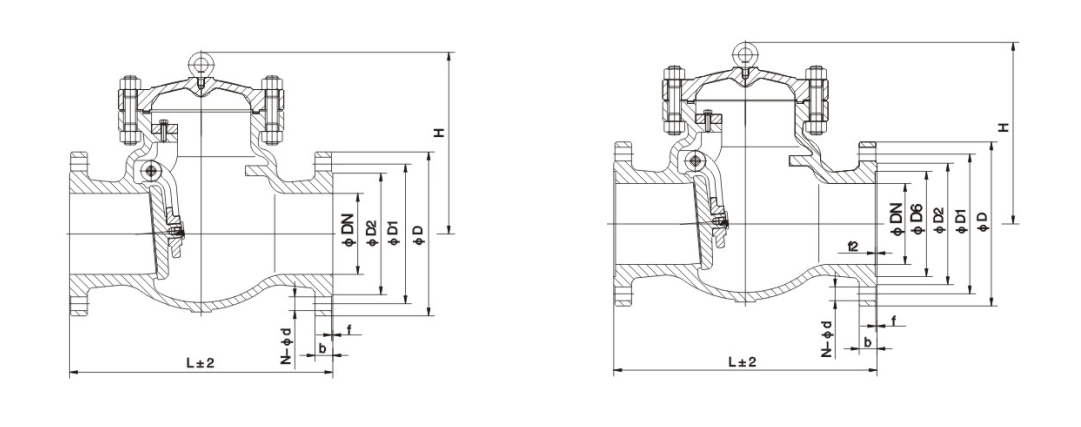 H44H、H44Y 型 PN16~PN250 旋啟式止回閥適用于壓力 1.6~25MPa 工作溫度 -29~+550℃ 的石油、化工、制藥、化肥、電力行業(yè)等各種工況的管路上,適用介質(zhì)為水、油品、蒸汽、酸性介質(zhì)等。